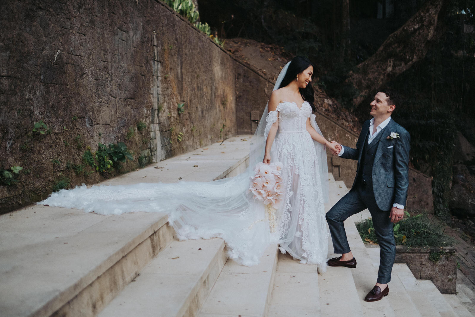 “It's a funny story but I thought Zol (Zollie is Matthew's nickname) was going to propose while we were in Paris but he never did. Instead, he proposed in Bali, my childhood home, and it was a million times more special. I was not happy with him the day he proposed because he asked me to drive 1,5 hour to dinner outside of Ubud in a jungle, but I wanted to go to the beach for sunset. He ended up convincing me and prepared a private dinner in an elevated bungalow high above a river in the jungle and I ended up apologizing so much for being a pain. It was so beautiful even though we missed most of the light because I took too long getting ready."