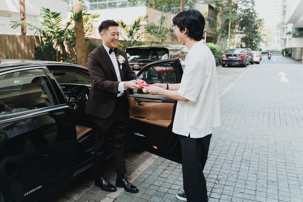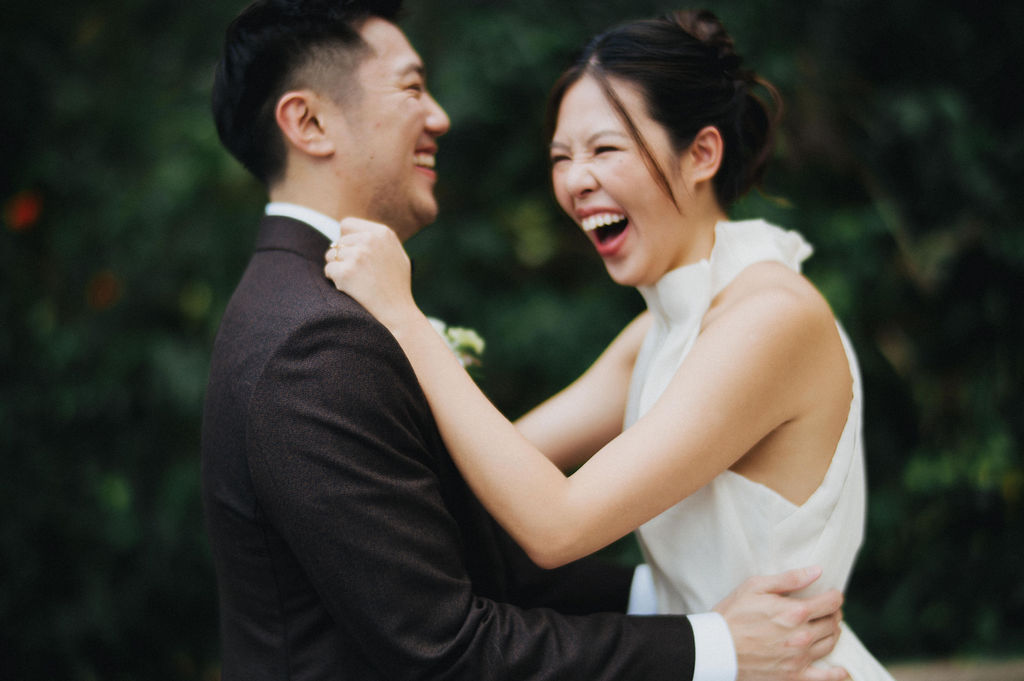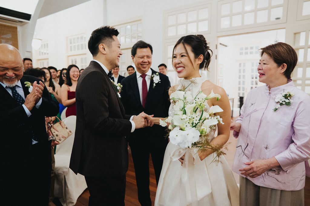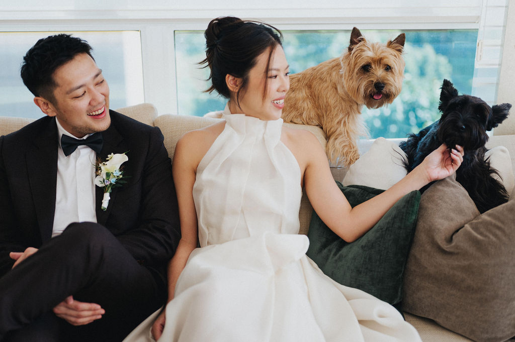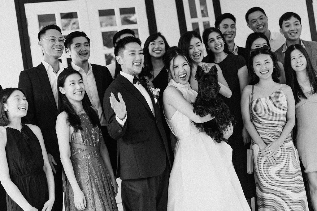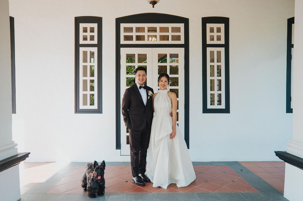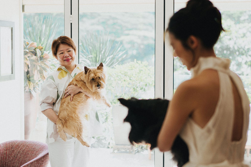 One sunny day in Singapore, Ei Lin and Bennett's wedding celebration brought together their closest family and friends for a joyous day. Their two adorable dogs added an extra layer of excitement, photobombing the shoot with their irresistible charm. The whole day was filled with genuine happiness, happy tears, and a lot of laughs.