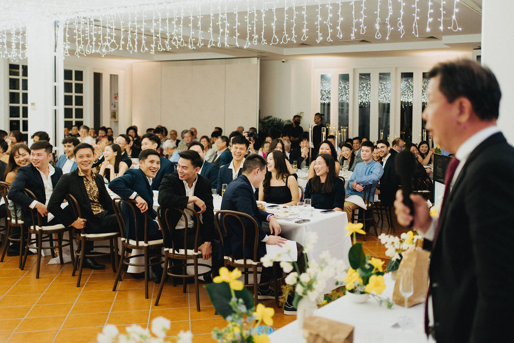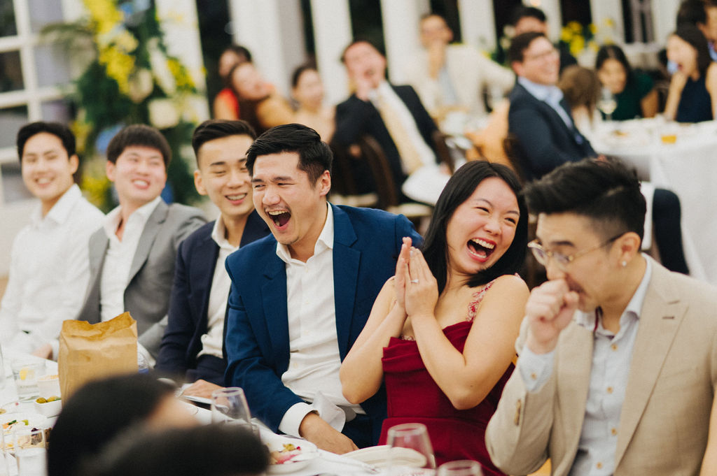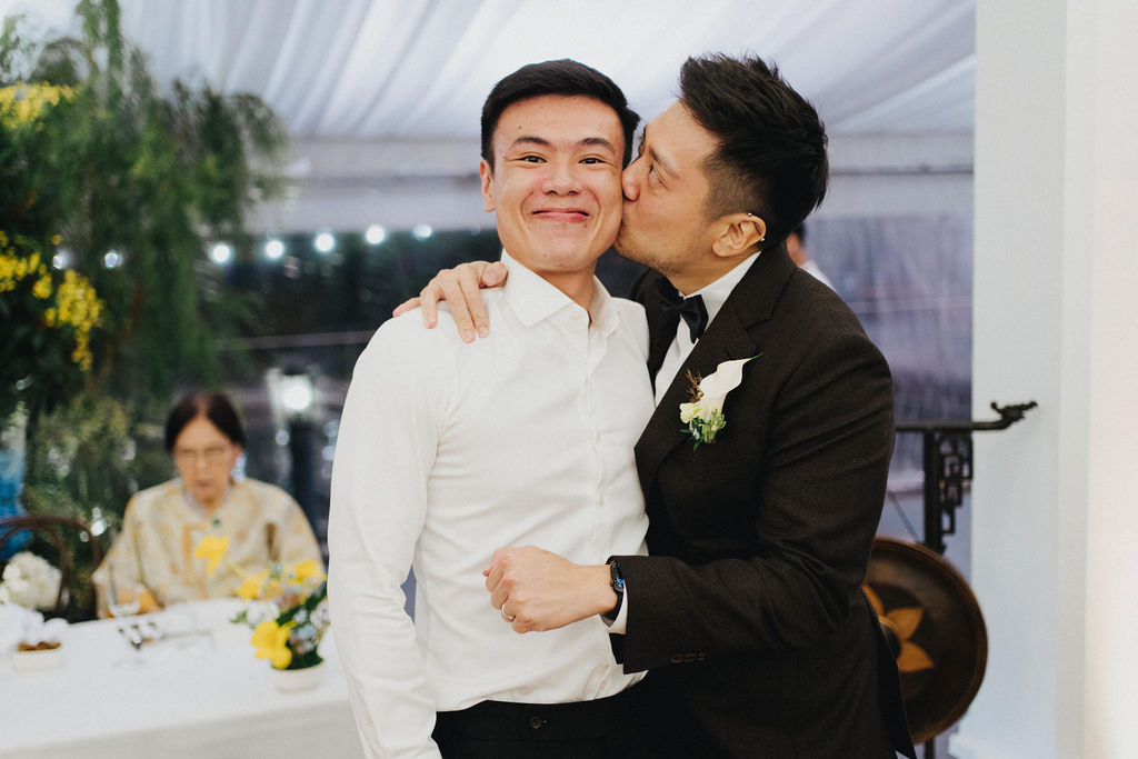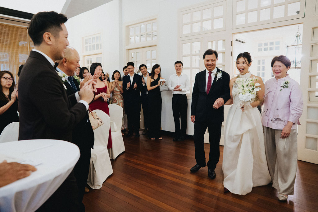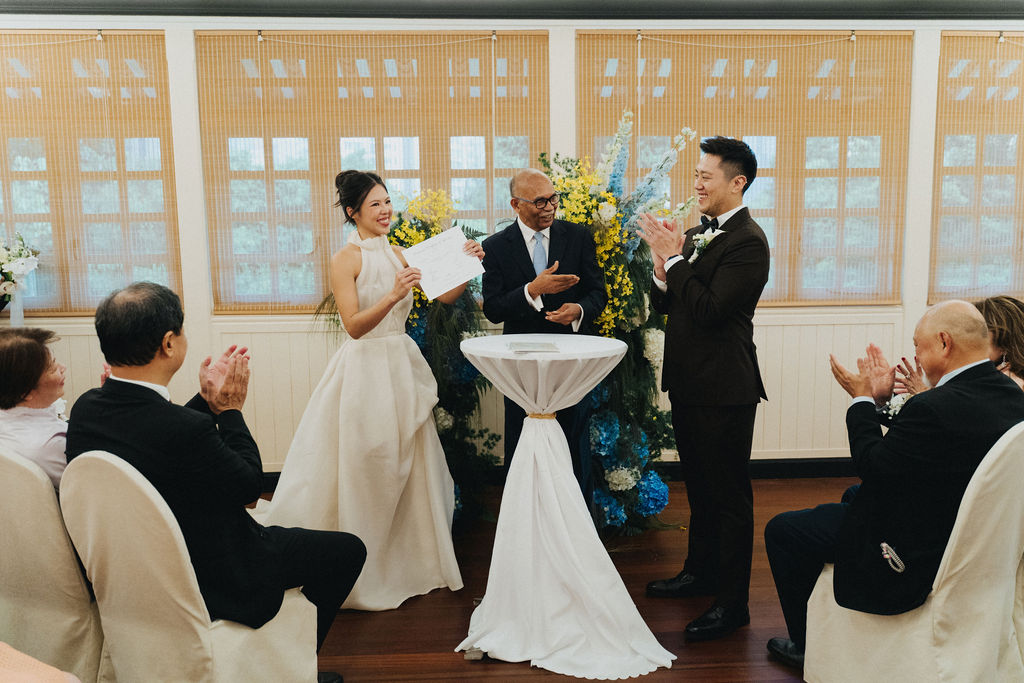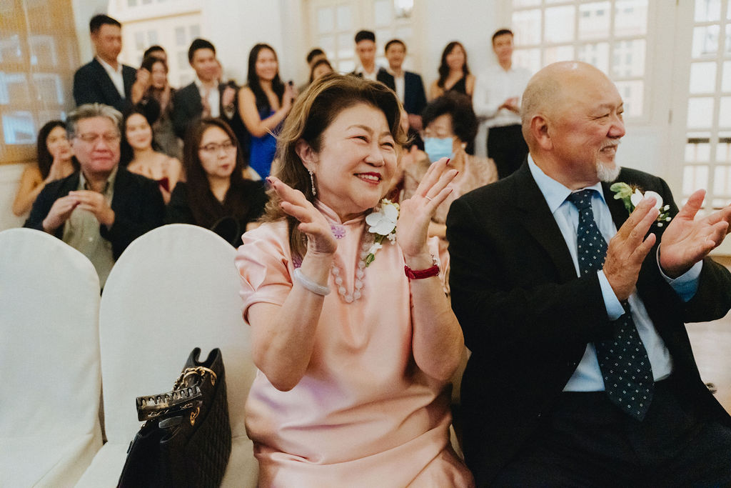 One sunny day in Singapore, Ei Lin and Bennett's wedding celebration brought together their closest family and friends for a joyous day. Their two adorable dogs added an extra layer of excitement, photobombing the shoot with their irresistible charm. The whole day was filled with genuine happiness, happy tears, and a lot of laughs.