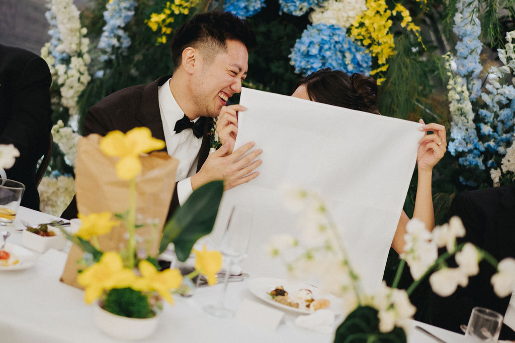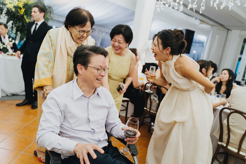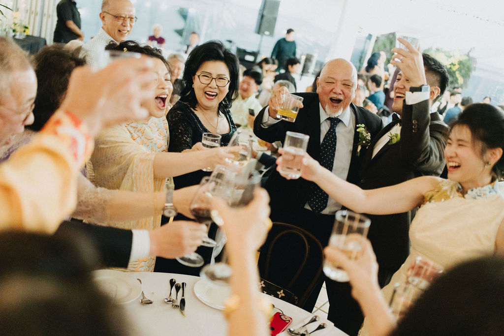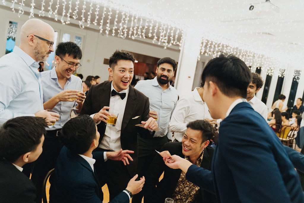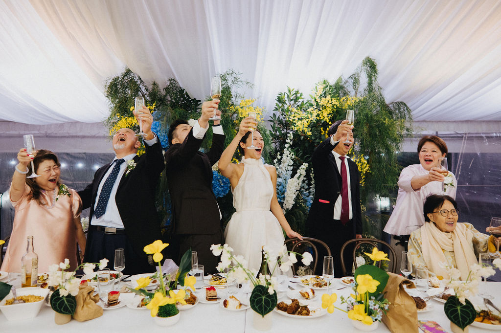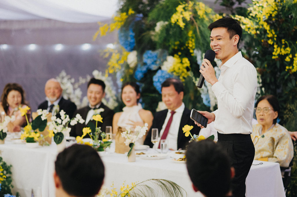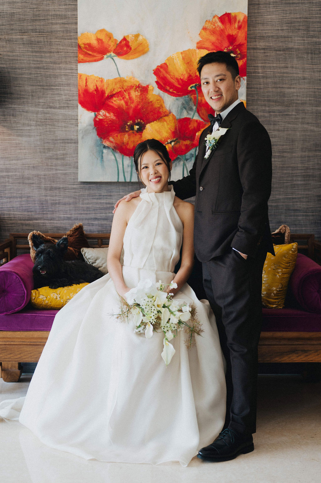 One sunny day in Singapore, Ei Lin and Bennett's wedding celebration brought together their closest family and friends for a joyous day. Their two adorable dogs added an extra layer of excitement, photobombing the shoot with their irresistible charm. The whole day was filled with genuine happiness, happy tears, and a lot of laughs.