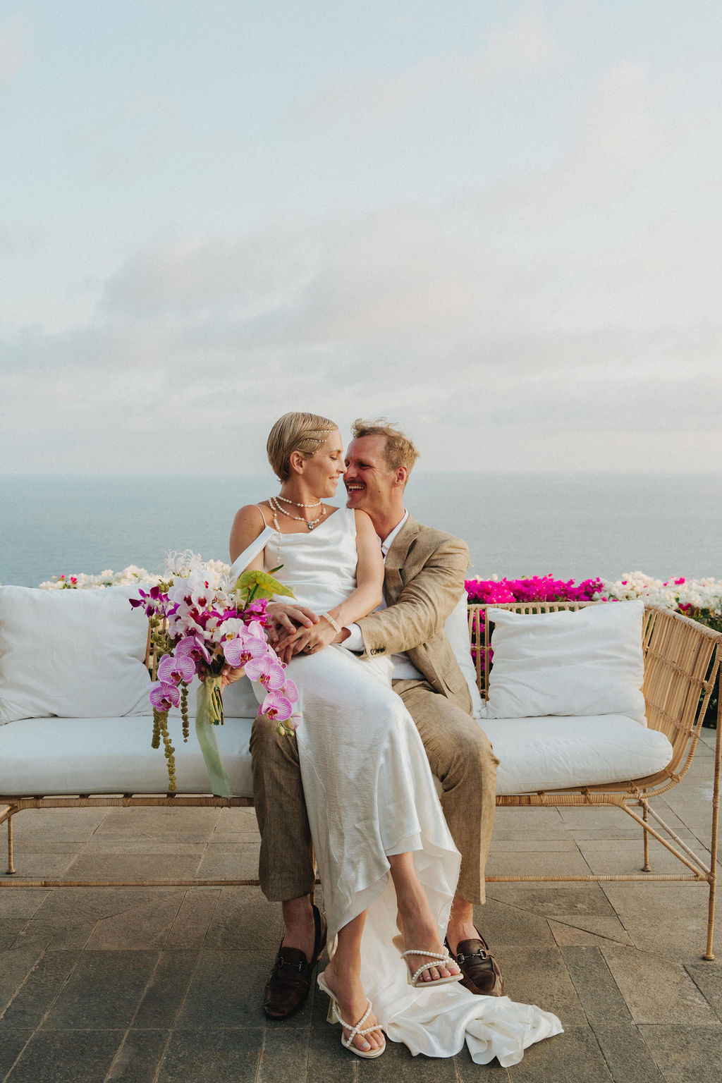 Jayme and Brady, a globe-trotting couple, chose Bali for their tropical wedding celebration. They wove cultural elements from their diverse backgrounds into the decor and floral arrangements, creating an intimate, vibrant atmosphere.