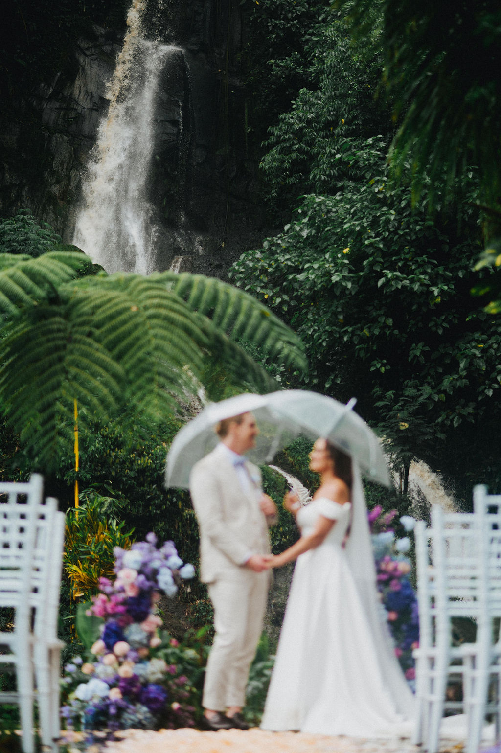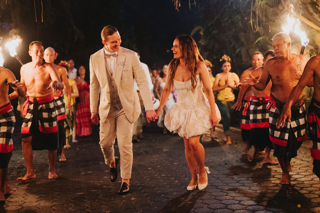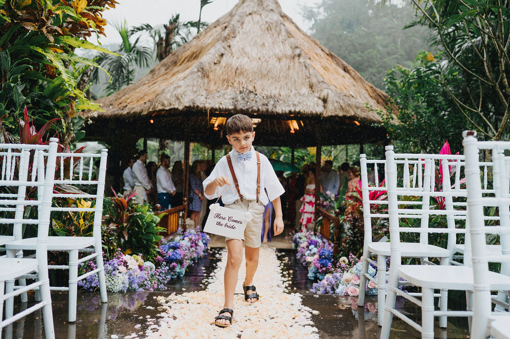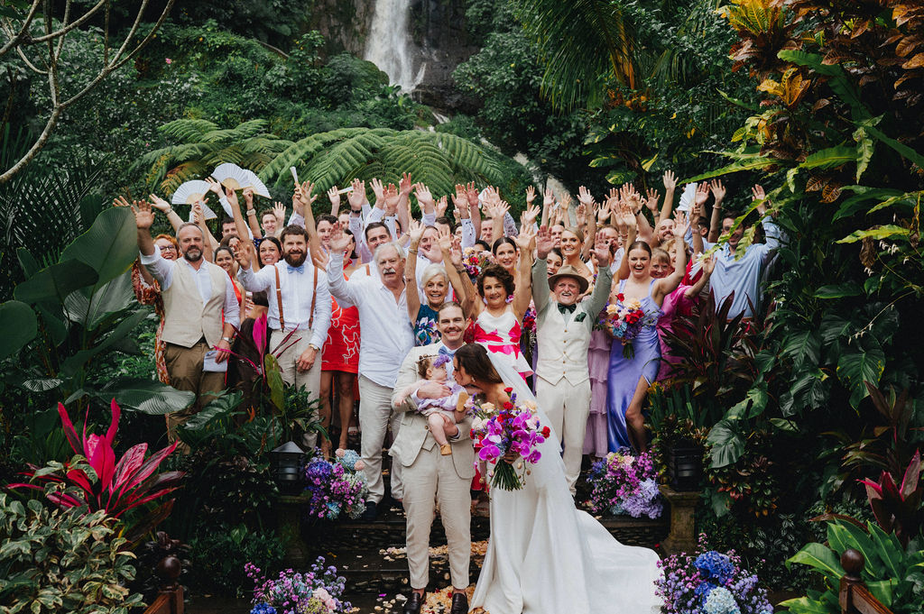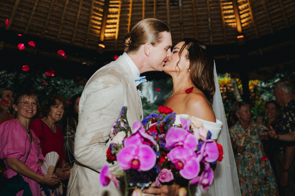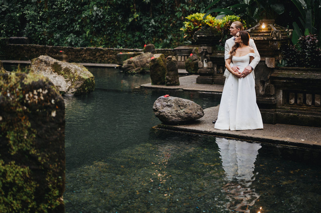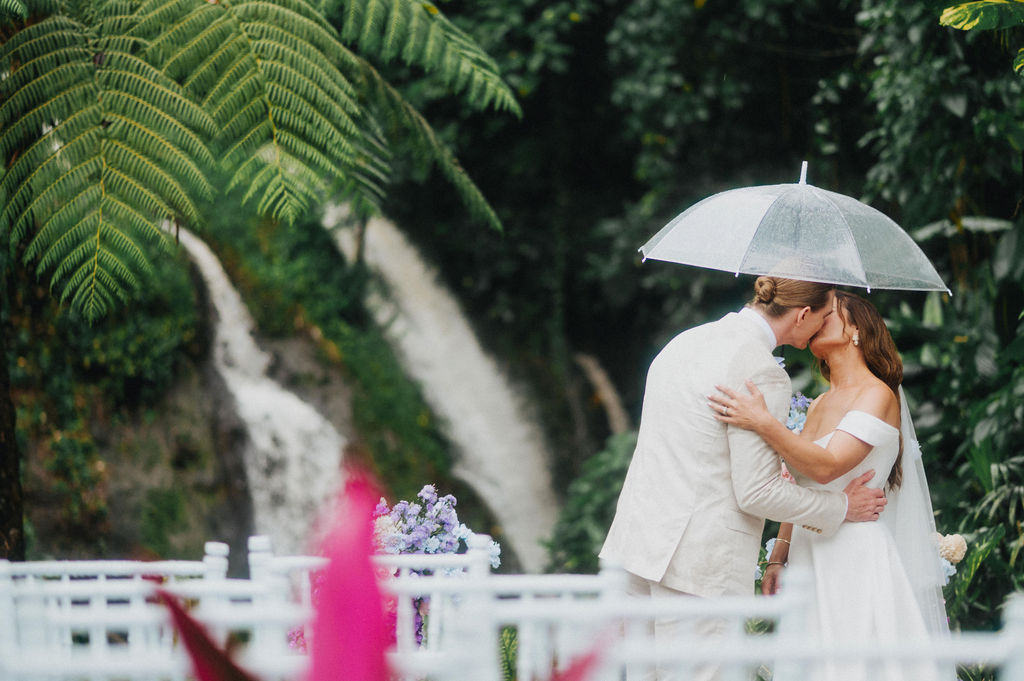 Under the lush greenery of Ubud, the drizzle of rain added a touch of romance to the intimate wedding celebration of Kesha and Milo. Raindrops gently kissed the petals of flowers as they exchanged vows, surrounded by their loved ones, who smiled through the misty veil.