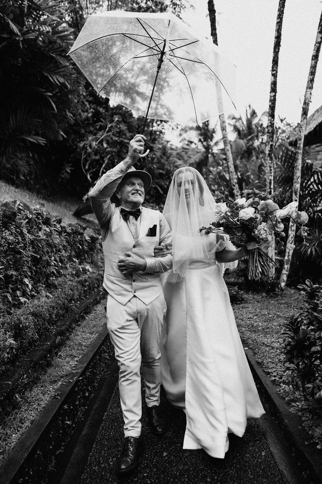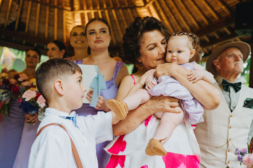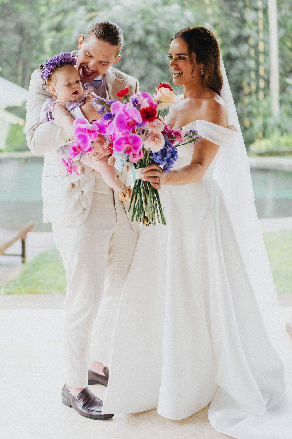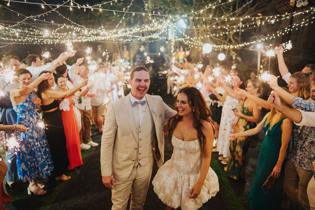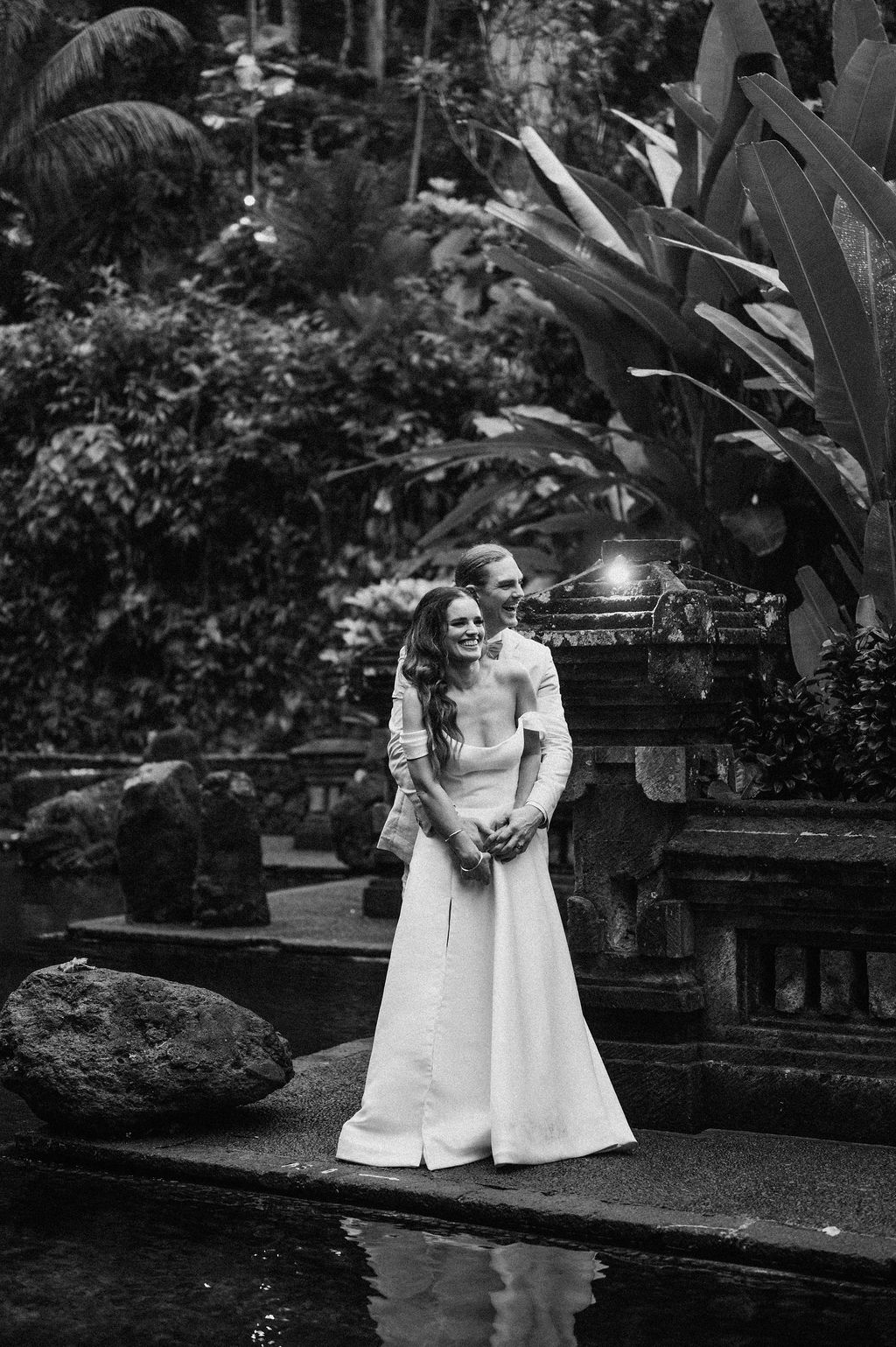 Under the lush greenery of Ubud, the drizzle of rain added a touch of romance to the intimate wedding celebration of Kesha and Milo. Raindrops gently kissed the petals of flowers as they exchanged vows, surrounded by their loved ones, who smiled through the misty veil.