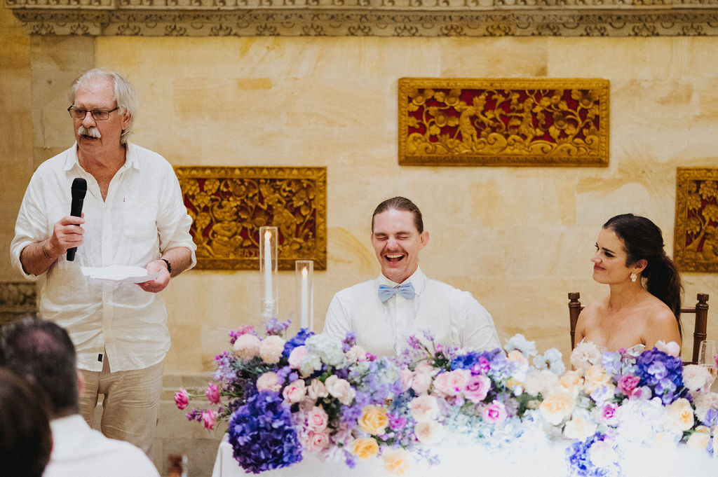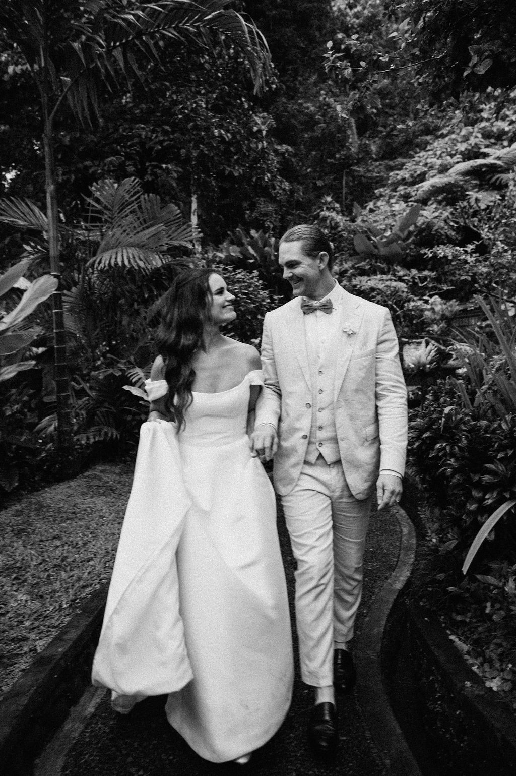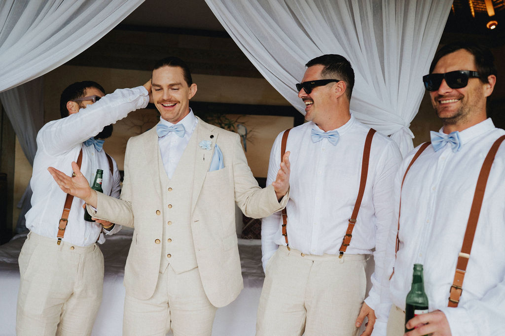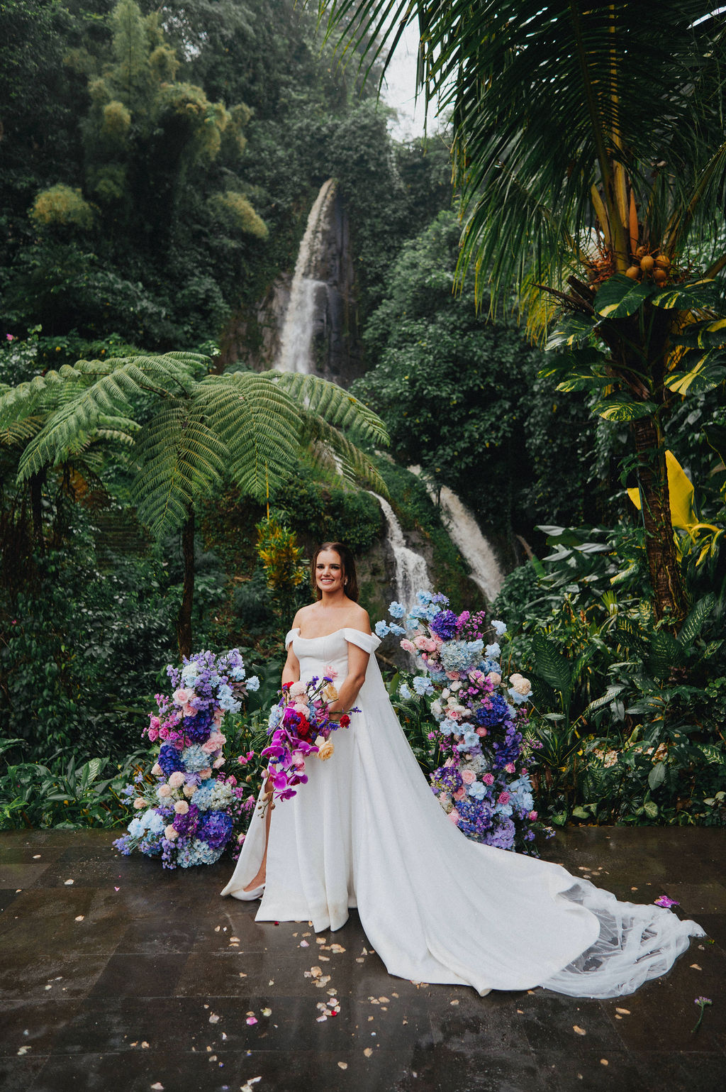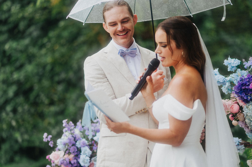 Under the lush greenery of Ubud, the drizzle of rain added a touch of romance to the intimate wedding celebration of Kesha and Milo. Raindrops gently kissed the petals of flowers as they exchanged vows, surrounded by their loved ones, who smiled through the misty veil.
